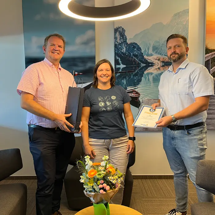Wir freuen uns, zwei herausragende Mitarbeiter zu ehren, die seit 15 Jahren unermüdlich zu unserem Erfolg beitragen: Jana Seifert und Martin Zollner. Ihre langjährige Treue und ihr Engagement sind für uns von unschätzbarem Wert.